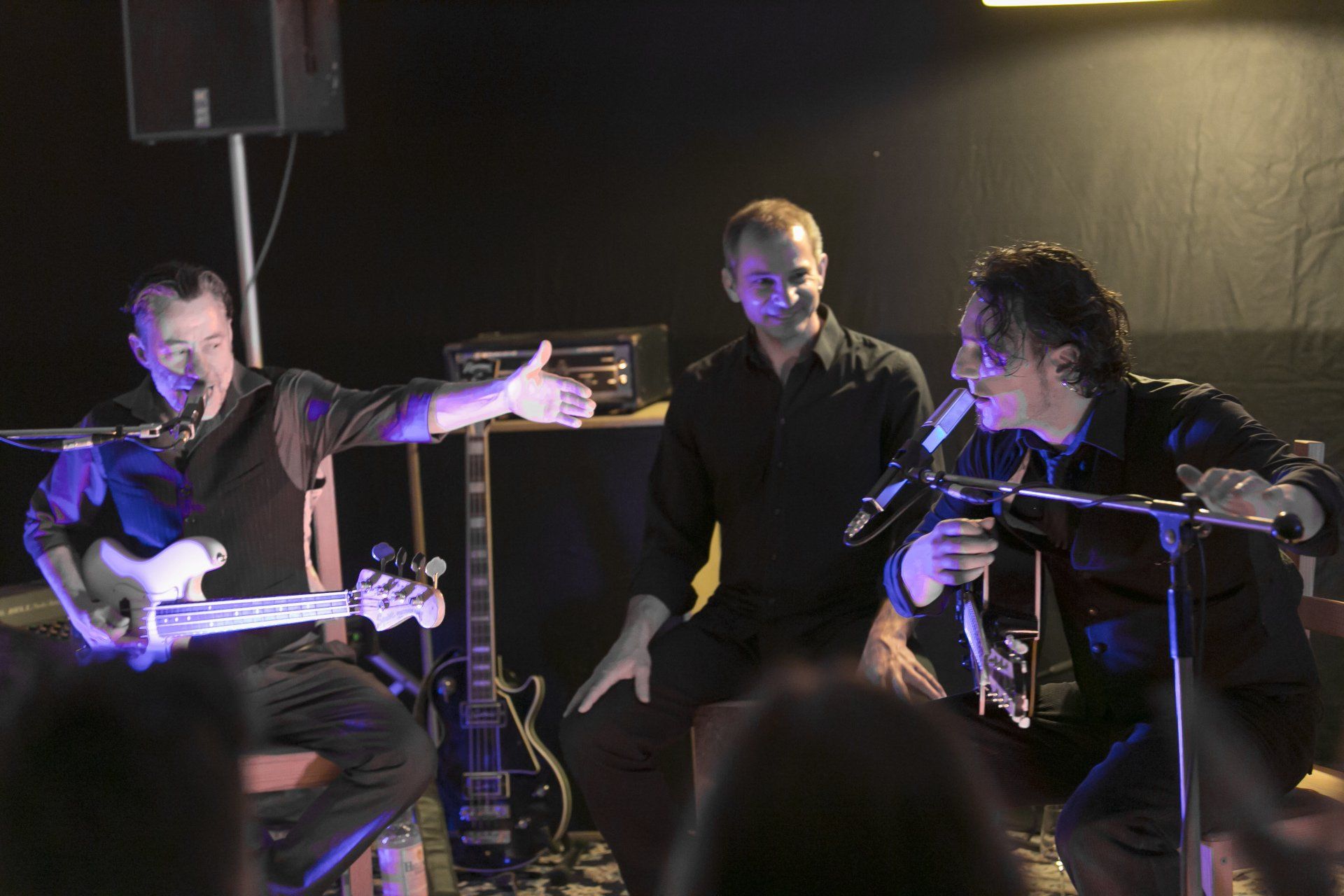 Live-Musik auf engstem Raum. Für dieses kleine Wohnzimmerkonzert treten die beiden Sänger und Gitarristen des Trios Carla & the dandys zu zweit auf.